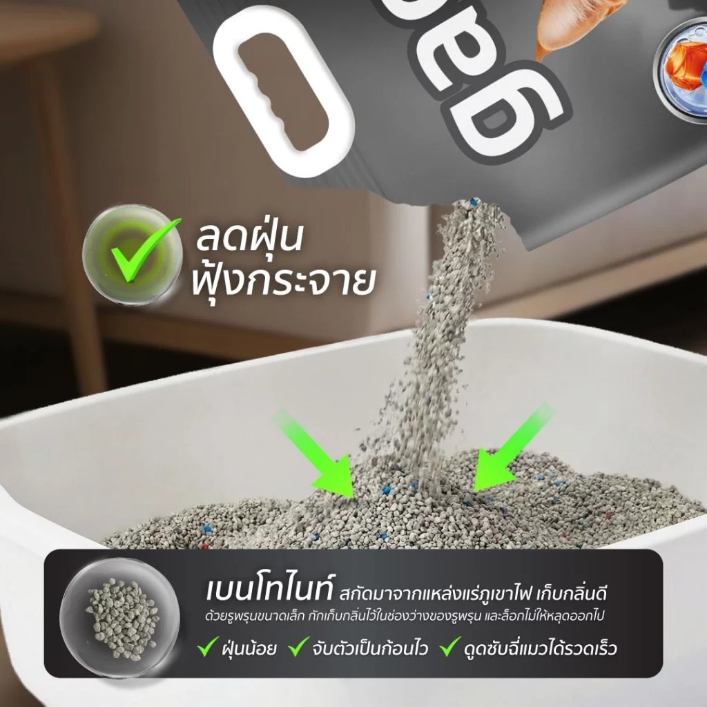 *ดำ 8Kg.*ทรายแมว Gager cabon plus ทรายแมวเบนโทไนท์ ภูเขาไฟ จับตัวเป็นก้อน (Cat Litter Bentonite)
