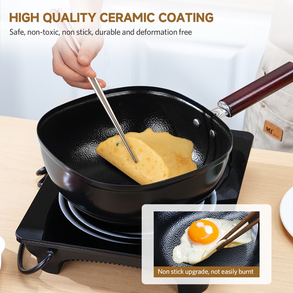 SUPVIBE ชุดกระทะเหล็ก การเคลือบเซรามิก กระทะทอด ผัด 24 ซม พร้อมตะแกรงนึ่งสแตนเลส ตะกร้าทอด เหมาะสำหรับเตาหลากหลายประเภท