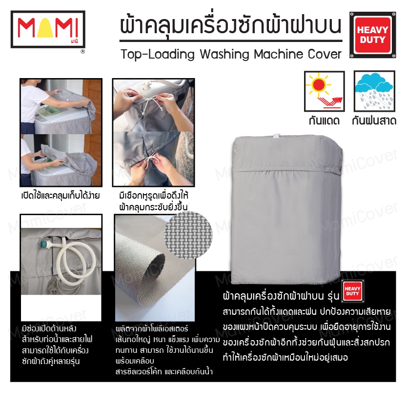 [หน้าฝนรอด แดดแรงเอาอยู่] ผ้าคลุมเครื่องซักผ้า ฝาบน กัน UV กันฝนสาด รุ่น Heavy Duty