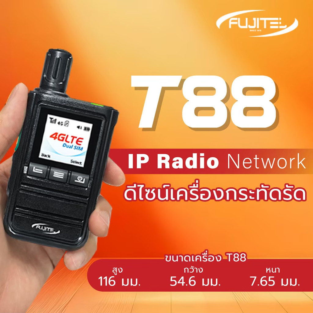 วิทยุสื่อสารใส่ซิม 4G LTE ใช้งานได้ 2 Sim Fujitel T88 เสียงคมชัด ไม่จำกัดระยะทาง รับประกันเครื่อง 1 ปี