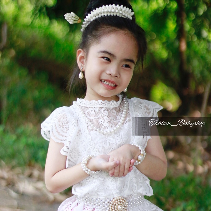 กำไลมุกเด็กราคาต่อคู่ เครื่องประดับชุดไทย