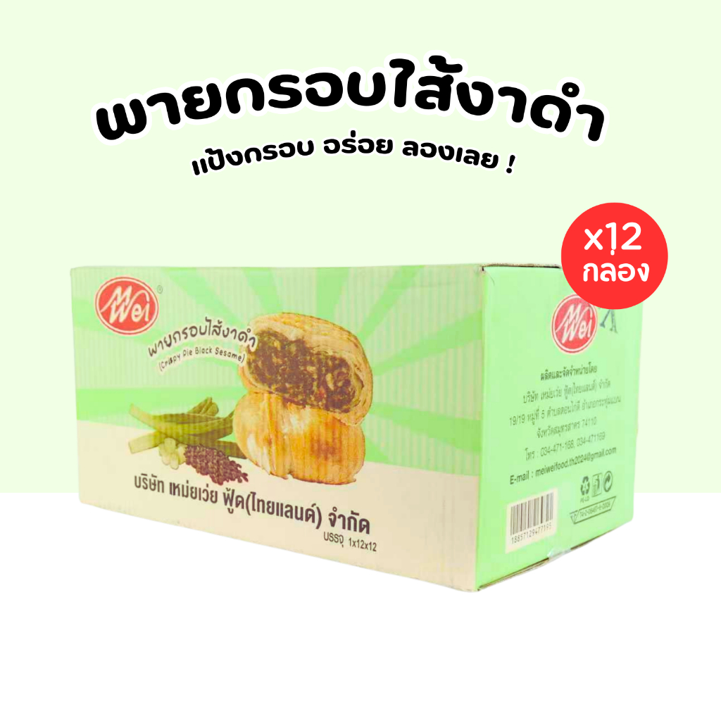 พายงาดำกรอบพรีเมียม แบรนด์ Meiwei | หอมมัน กลมกล่อม | 1 กล่อง 12 ชิ้น หอมไส้งาดำ