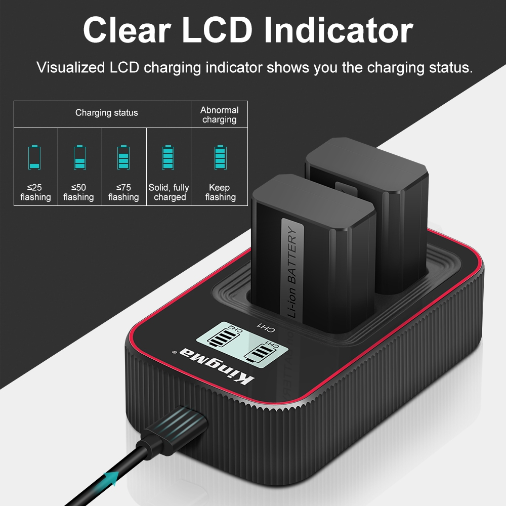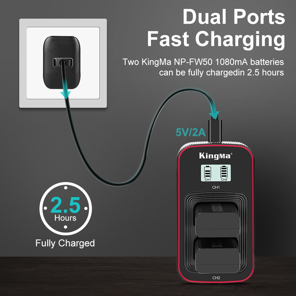 KingMa แท่นชาร์จแบตเตอรี่ + 2x แบตเตอรี่ Sony NP-FW50 NPFW50 Sony A6400 A5100 A6300 A6500 A7 A7II
