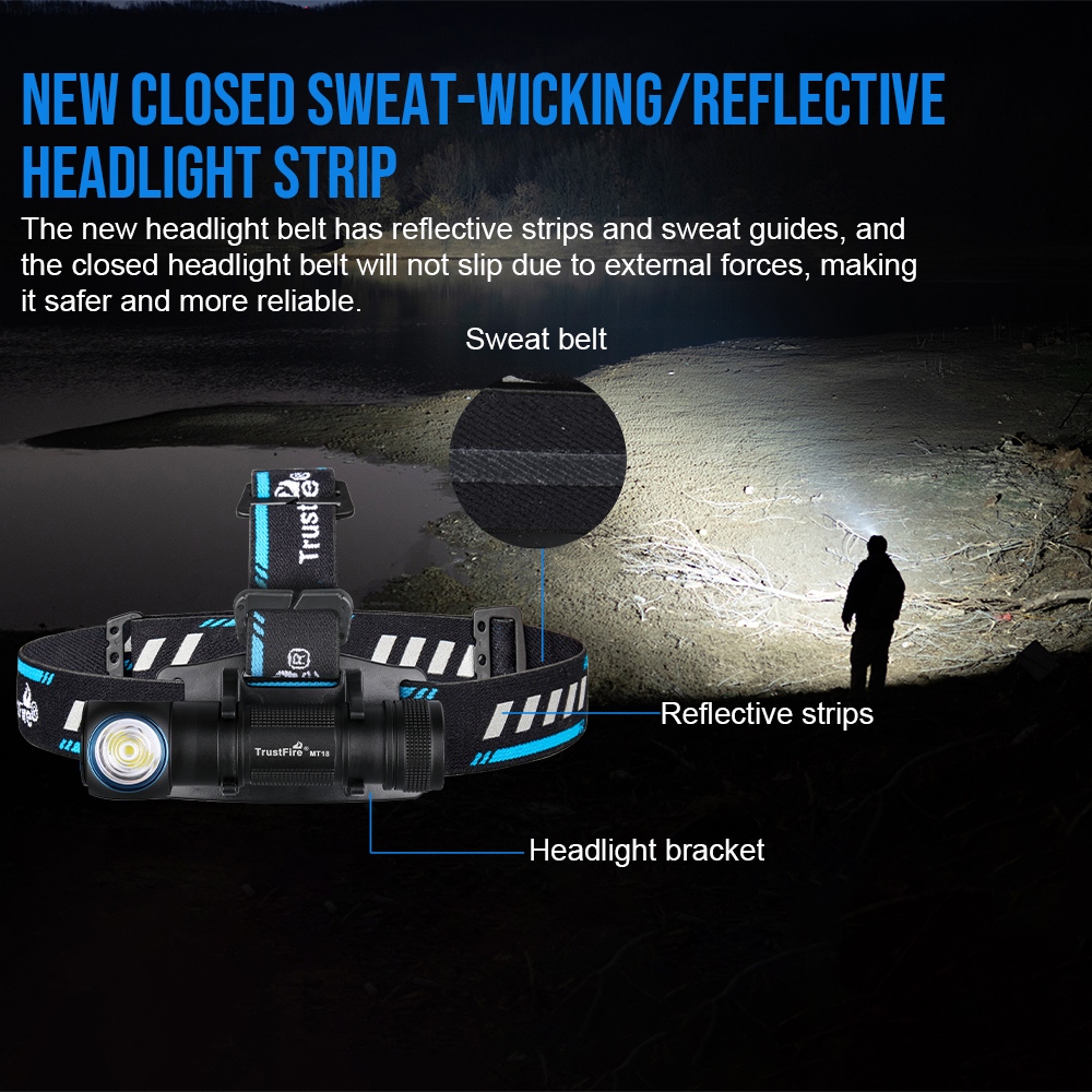 ไฟฉายคาดศีรษะ Trustfire MT18 ความสว่าง 1100 ลูเมน ชาร์จไฟผ่าน USB ปรับมุมได้ 180 องศา กันน้ำ ทรงพลัง พร้อมแม่เหล็กที่ท้า