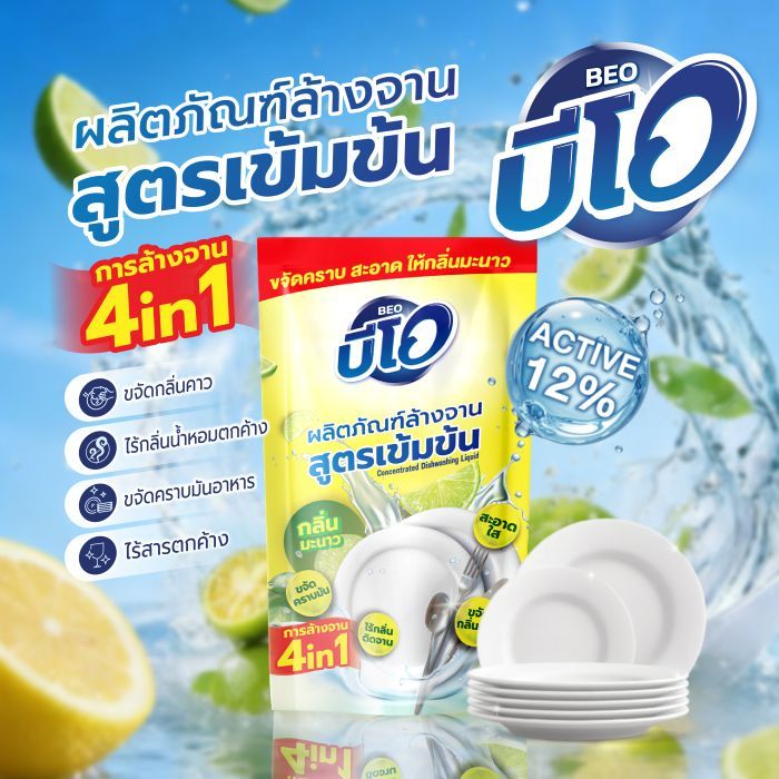 [ใหม่] BEO บีโอ น้ำยาล้างจาน ถุงเติม 500 มล. (มีให้เลือก 2 สูตร) แพ็ค 3 สุดคุ้ม x1 (3 ถุง)