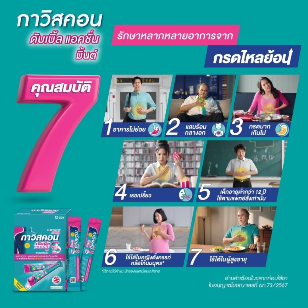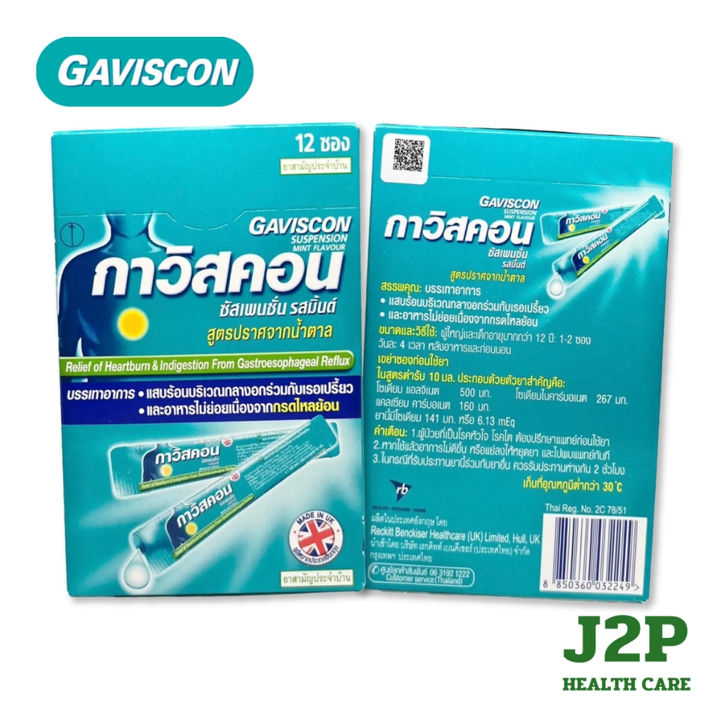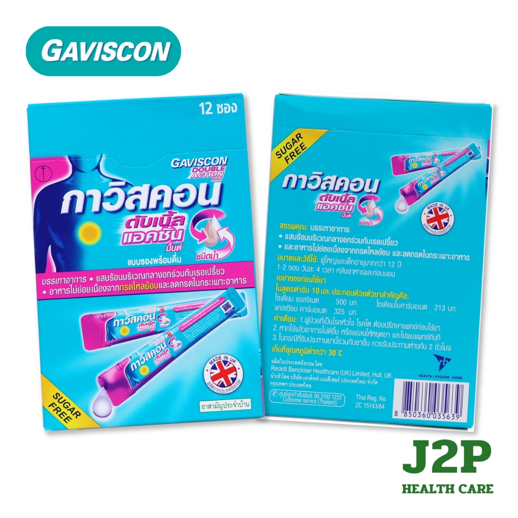 Gaviscon Suspension/Double Action Mint กาวิสคอน รสมิ้นต์ ลดกรดไหลย้อน ยาสามัญประจำบ้า (ยกกล่อง 12 ซอง)