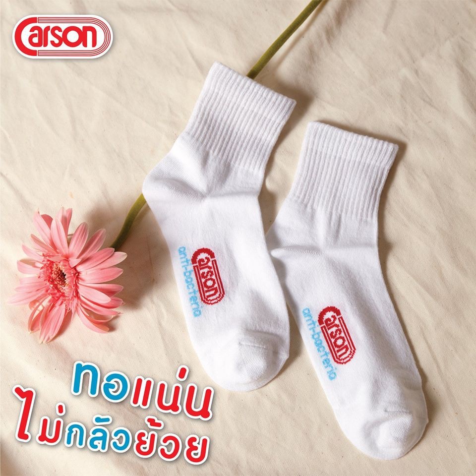ถุงเท้านักเรียน Carson รุ่นแอนตี้แบคทีเรีย สีขาวล้วน แพ็ค 1 คู่ (Antibac-WH)