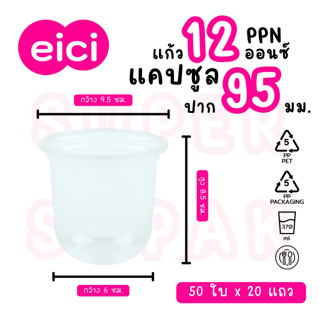 [ยกลัง] eici แก้ว 12 ออนซ์ ปาก 95 มม. PP "แคปซูล"