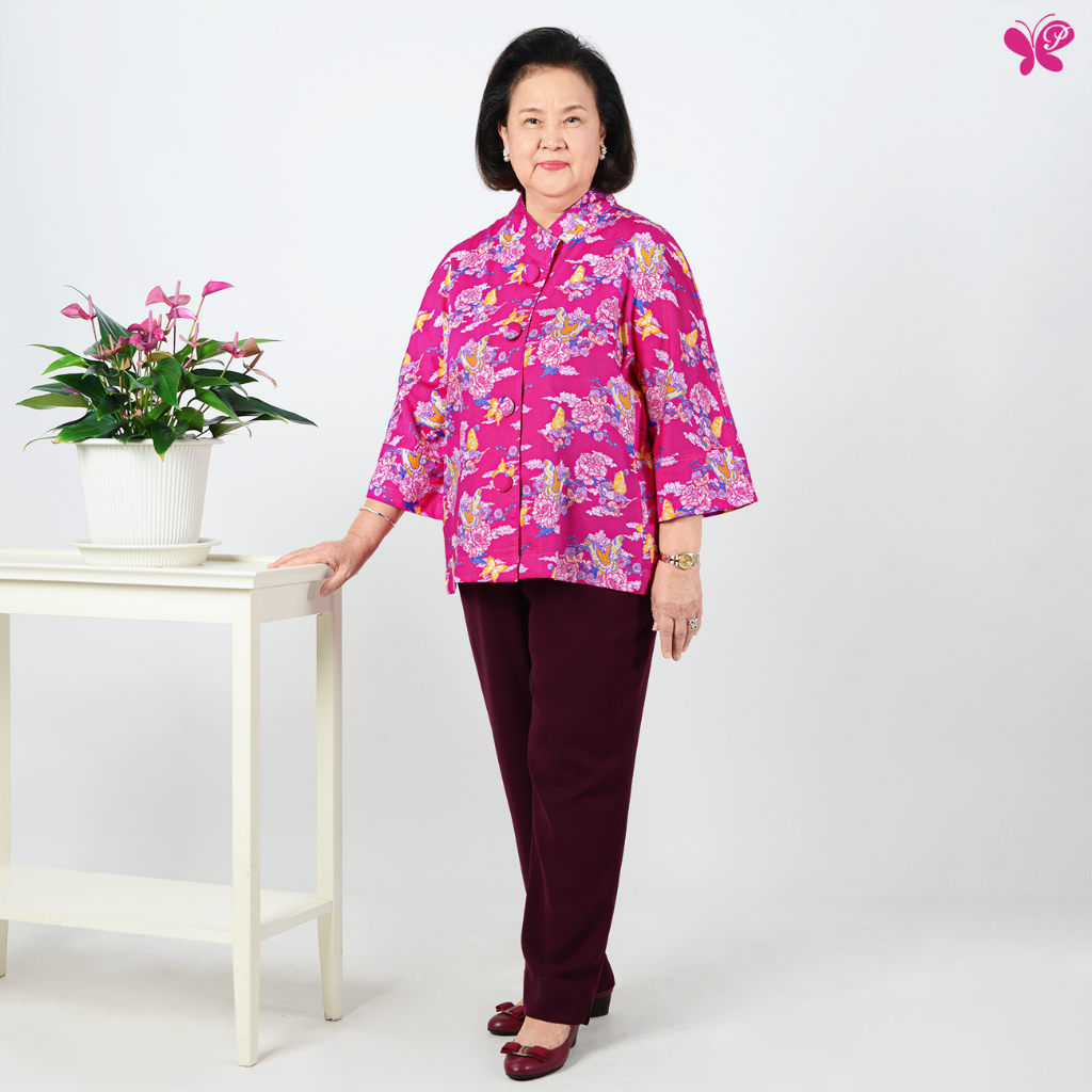 เสื้อผู้สูงอายุ Miki Oversized Top - Butterfly ผ้า Cotton 100% ทรงหลวม พิมพ์ลายผีเสื้อ กระดุมปั้มมือ (Elderly Friendly)