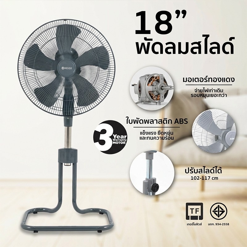 พัดลมอุตสาหกรรมขนาด 18 นิ้ว พัดลมตั้งพื้น 5 ใบพัด แรงลมสูง เหมาะสำหรับใช้งานในโรงงาน รับประกัน 2 ปี