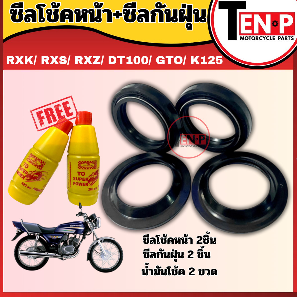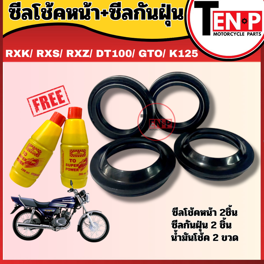ชุดซีลโช๊คหน้า+ซีลกันฝุ่น RXK/ RXS/ RXZ/ DT100/ GTO/ K125 (ซีลกันฝุ่น2ชิ้น แถมฟรีน้ำมันโช๊ค 2 ขวด)