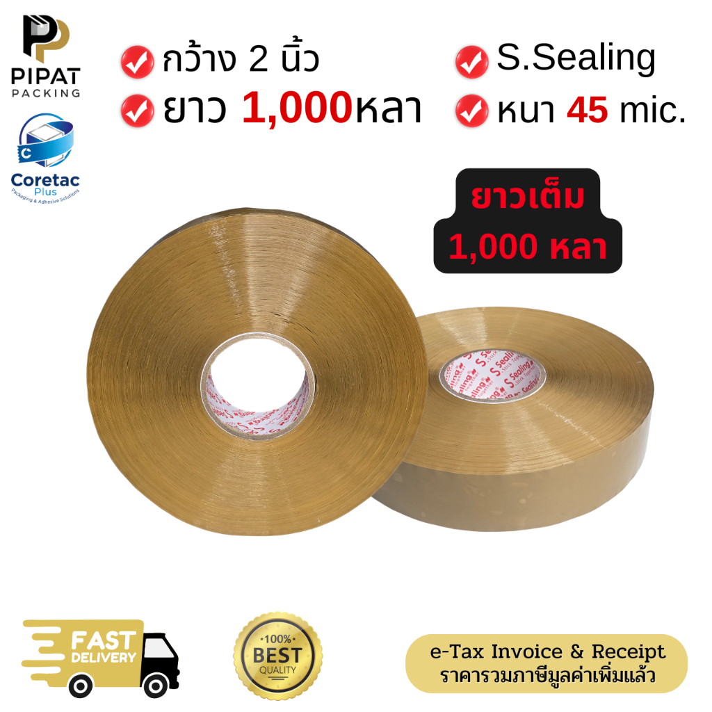 เทปใส เทปขุ่น ขนาด 2" 1,000หลา หนา 45mic. เทปปิดกล่องคุณภาพสูง เหมาะกับงานอุตสาหกรรม