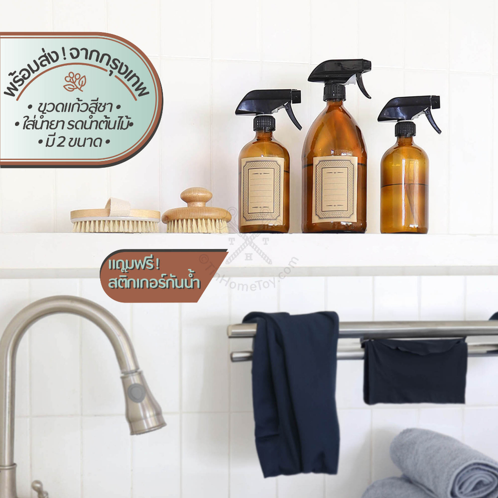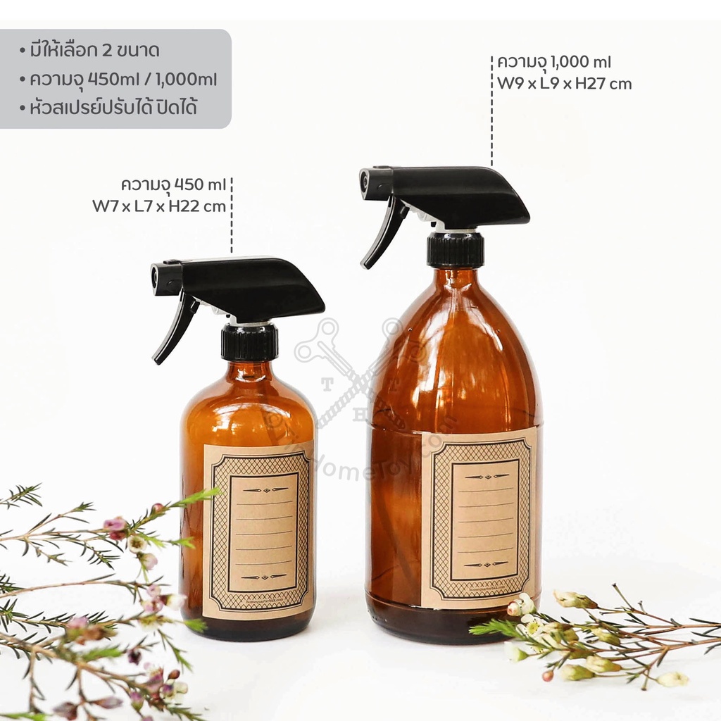 ขวดแก้วสเปรย์สีชา Glass Bottle-Spray-Brown 450ml/1000ml | ขวด แก้ว ฝาเกลียว สี ชา น้ำตาล น้ำ ยา แจกัน ปั๊ม สเปรย์ สบู่