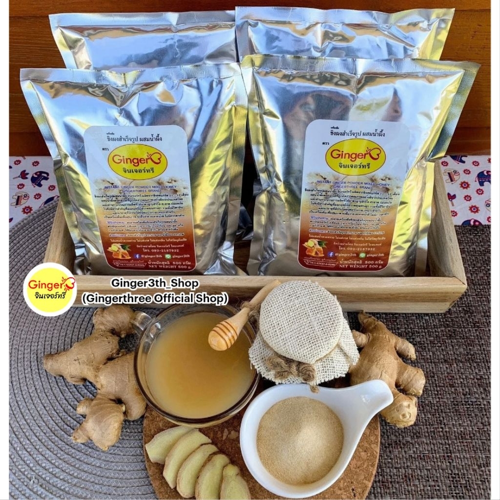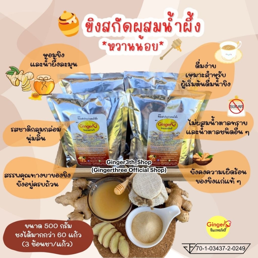 ขิงสกัดผสมน้ำผึ้ง (หวานน้อยมาก) ขนาด 500 กรัม ตราจินเจอร์ทรี (Ginger3) ละลายดีไม่มีกากตะกอน