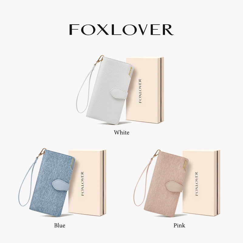 FOXLOVER กระเป๋าสตางค์ผู้หญิง ผ้ายีนส์ ทรงหูหิ้ว ลายสีพาสเทล