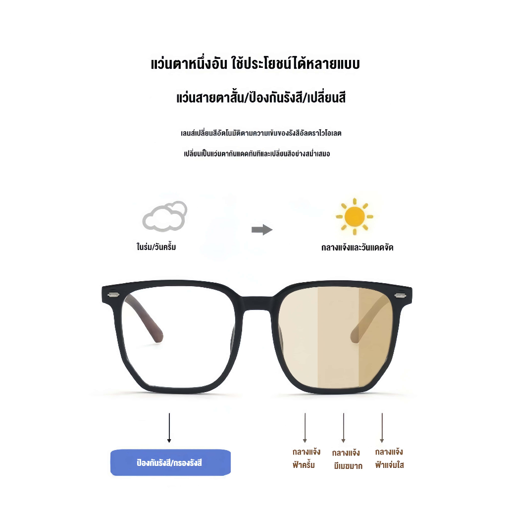 แว่นตาสายตาสั้น เลนส์ออโตเมติก ออกแดดเปลี่ยนสี UV400 กรองแสงสีฟ้า Super Auto Blue Lens กันรังสี UV99% ป้องกันความเมื่อยล้า ออโต้กรองแสง แว่นกรองแสงคอม แว่นตาเปลี่ยนสีอัตโนมัติ ใส่สบายไม่กดจมูก Unisex