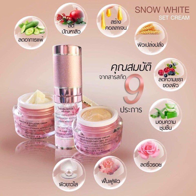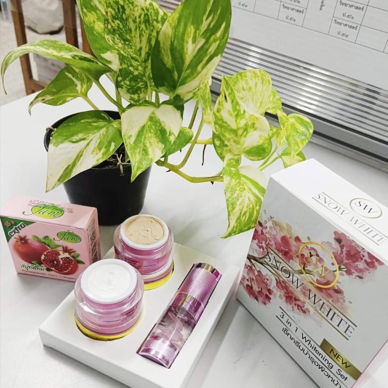 ครีมสโนไวท์ของแท้100%1ชุดประกอบด้วย4ชิ้น💐(เซรั่ม,ครีมกลางวัน,ครีมกลางคืน,สบู่)