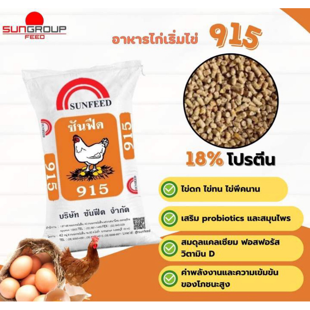 แบ่งขาย อาหารไก่ไข่ ซันฟีด 915M บรรจุขนาด 5 กก. 10 กก. และ 20 กก.