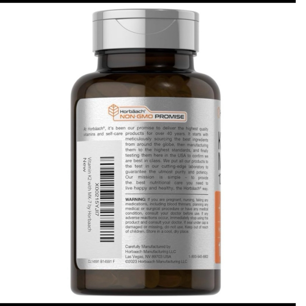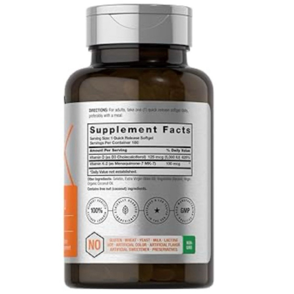 [ HORBAACH ]❇️ K2MK7 ( 100 MCG ) + D3 ( 5000 IU )( 180 SOFTGELS )