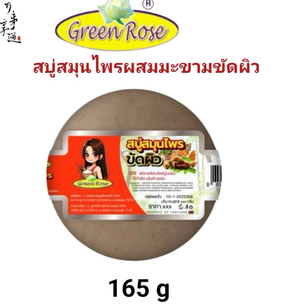 กรีนโรสบู่สมุนไพรสูตรโบราณผสมมผงมะขามขัดผิวขนาด165กรัมแพ็ค6ก้อน