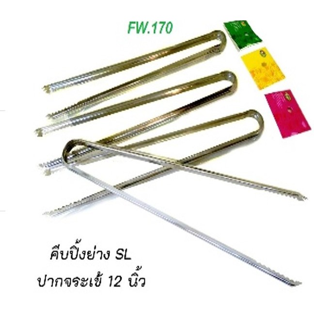 คีบปิ้งย่างSL ปากจระเข้ 12 นิ้ว ที่คีบอาหารสแตนเลสfood grade หน้ากว้าง2เซนติเมตร ตราดอกไม้