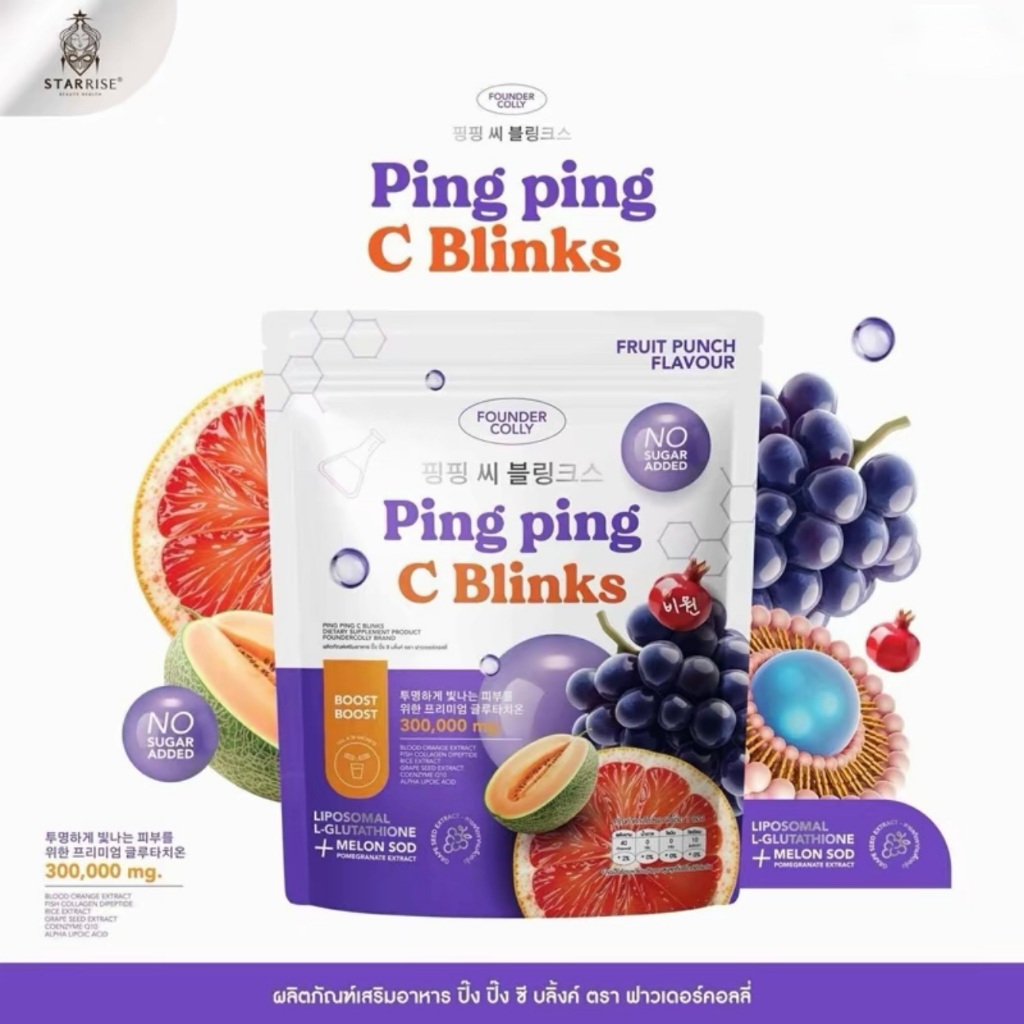 (ของแท้+พร้อมส่ง) กลูต้าปิ๊งปิ๊ง น้ำชงปิ๊งปิ๊ง Ping Ping C Blinks Fouderskin Colly 1 ห่อ บรรจุ 30 ซอง