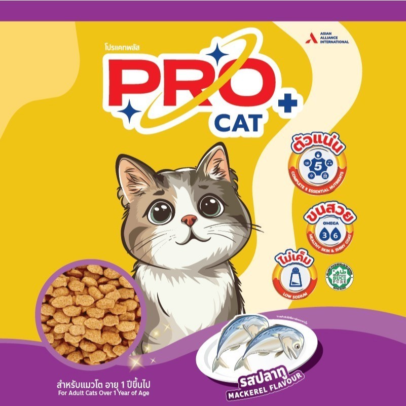 Pro Cat [แพ็ค 3*1kg.] อาหารแมว โปรแคท อาหารชนิดเม็ด สำหรับ "แมวโต / Adult" 1 กิโลกรัม