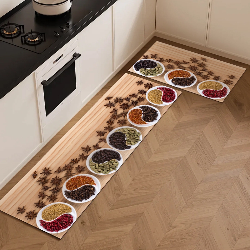 (Hongxing)พรมปูพื้นครัวกำมะหยี่ ดูดซับน้ำและกันลื่น นุ่มและสบาย ชุด 2 ชิ้น