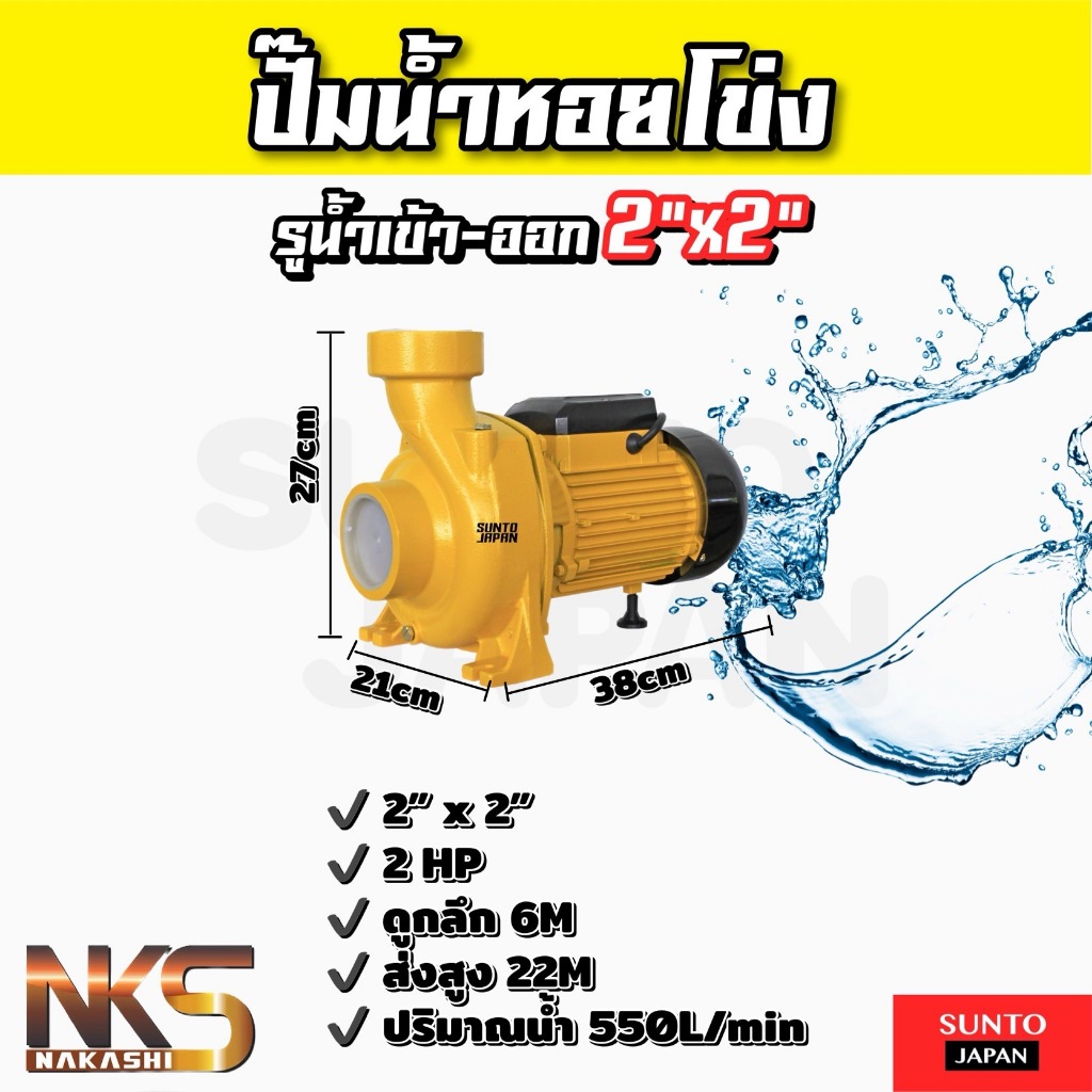 (P01) ปั๊มหอยโข่ง 2 นิ้ว 2 แรงม้า 220V ปั๊มน้ำไฟฟ้า ปั๊มน้ำ ใบพัดทองเหลือง เครื่องสูบน้ำ ปั้มสูบน้ำ
