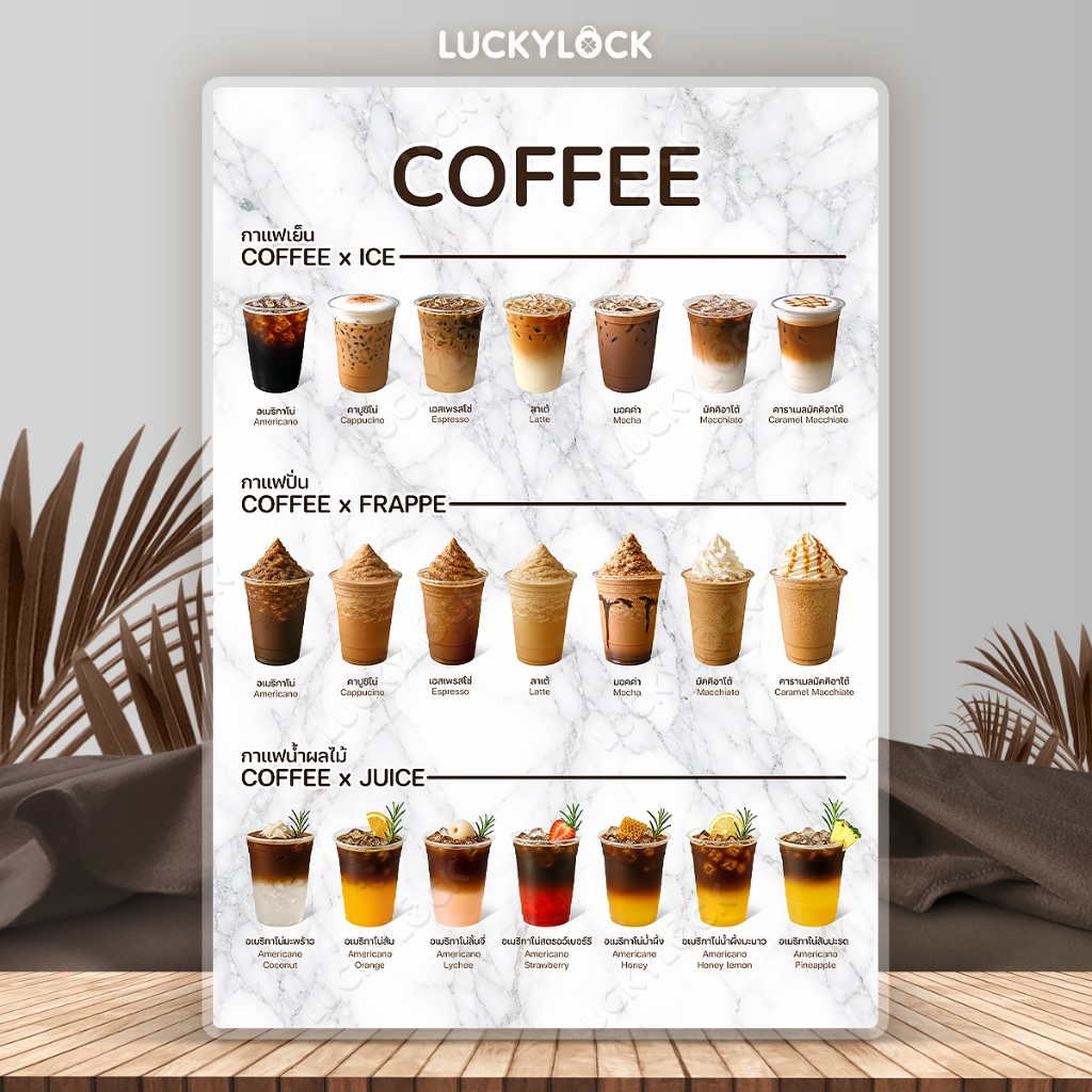 ป้ายเมนูกาแฟ แบบมินิมอล ป้ายโปสเตอร์สำหรับร้านกาแฟ คาเฟ่ แบบเคลือบแข็งพร้อมใช้งาน