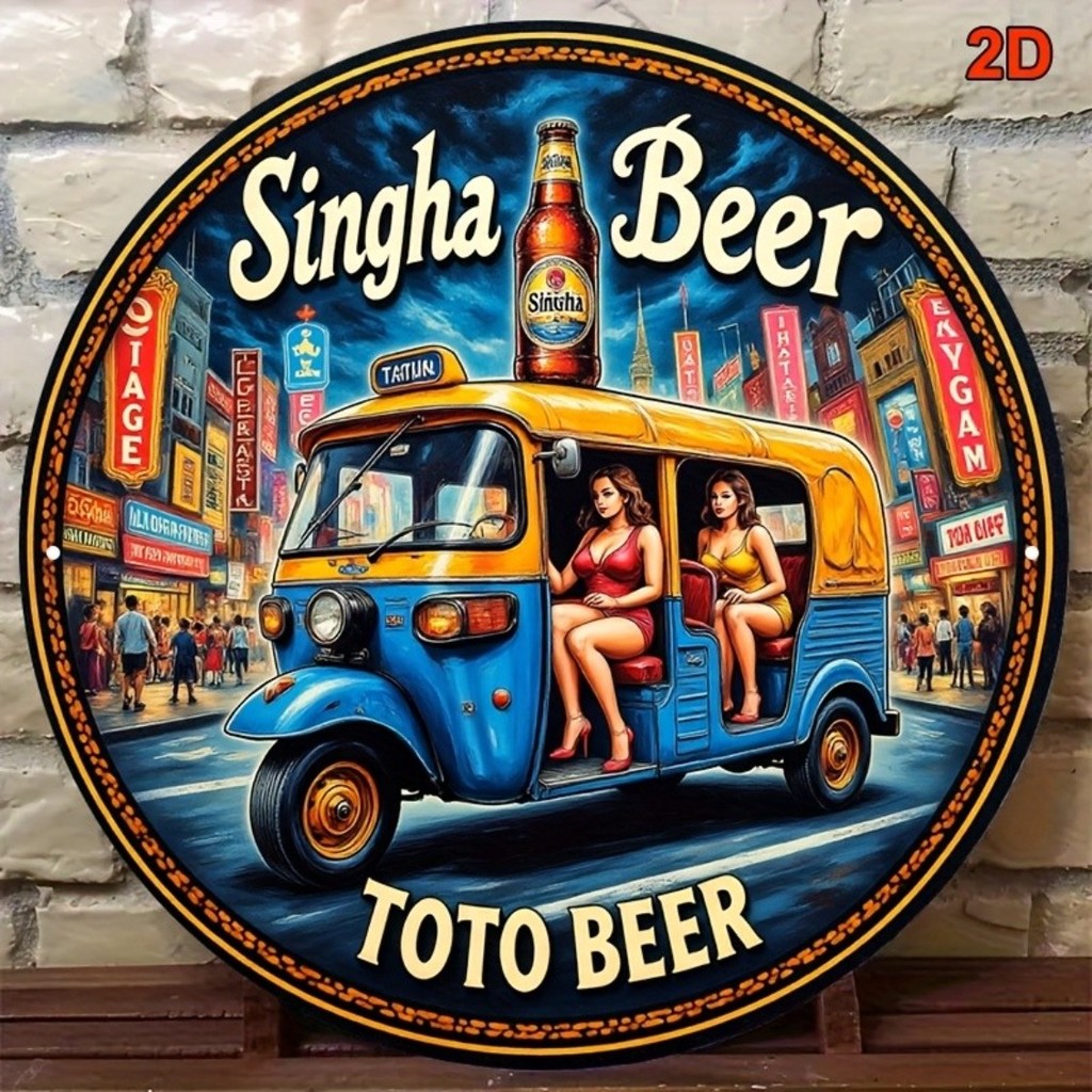 CIFbuy Vintage Bangkok Night Scene โลหะ Wall Art รอบป้ายตกแต่งบ้านบาร์ของขวัญ