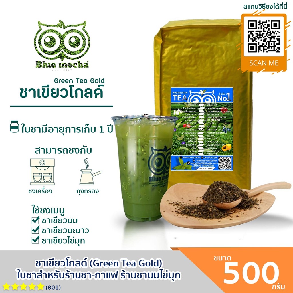 ชาเขียวโกลด์ ชาเขียวนม ขนาดบรรจุ 500 กรัม