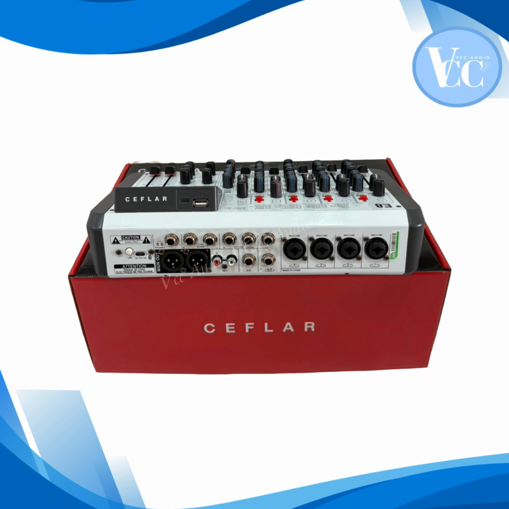 Ceflar มิกเซอร์ E8 ขนาดกะทัดรัด 8 แชนเนล DSP 99 แบบ 4 โมโน + 2 ชุดสเตอริโอ MP3 บลูทูธ บันทึกเสียง รองรับ USB สำหรับไลฟ์ส
