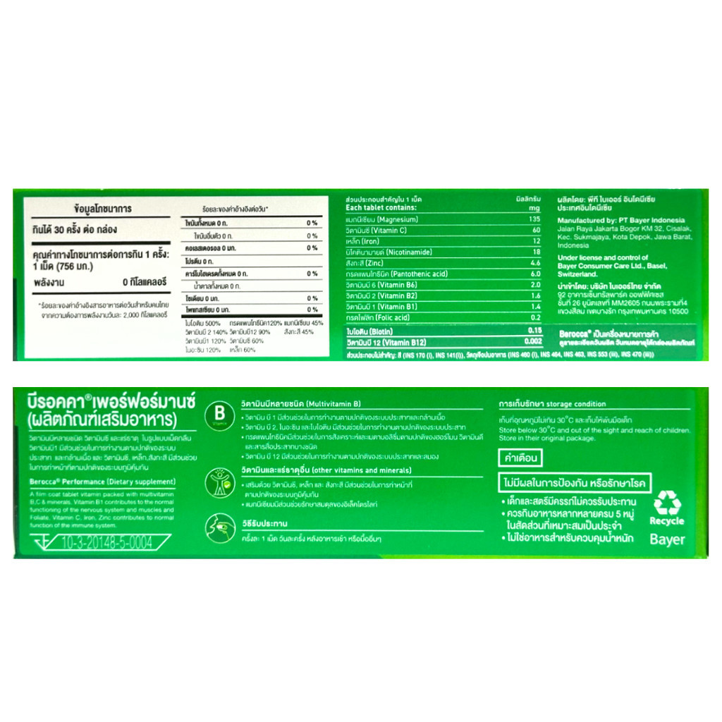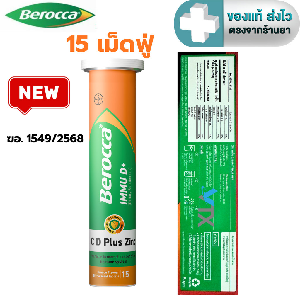 BEROCCA PERFORMANCE บีรอคคา เพอร์ฟอร์มานซ์ 30 เม็ด / BEROCCA IMMU D+ C , D Plus Zinc เม็ดฟู่รสส้ม 15 เม็ด [PC]