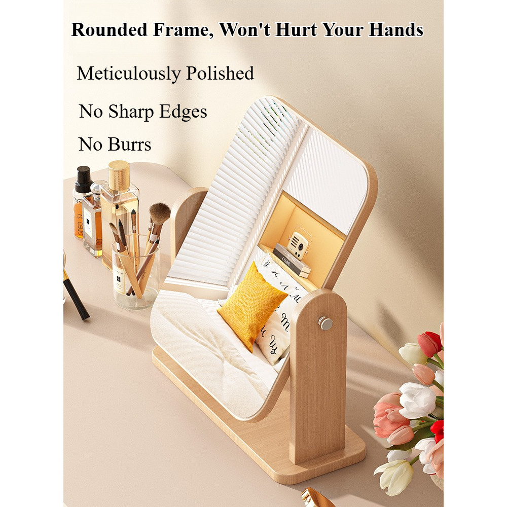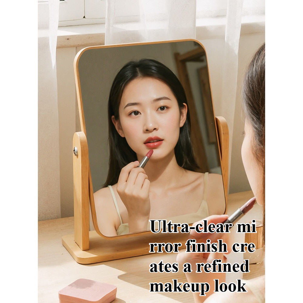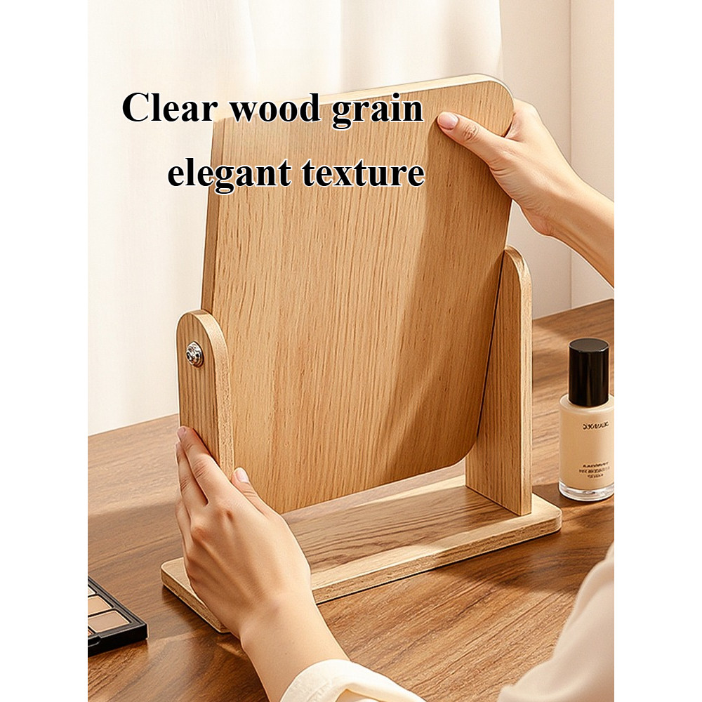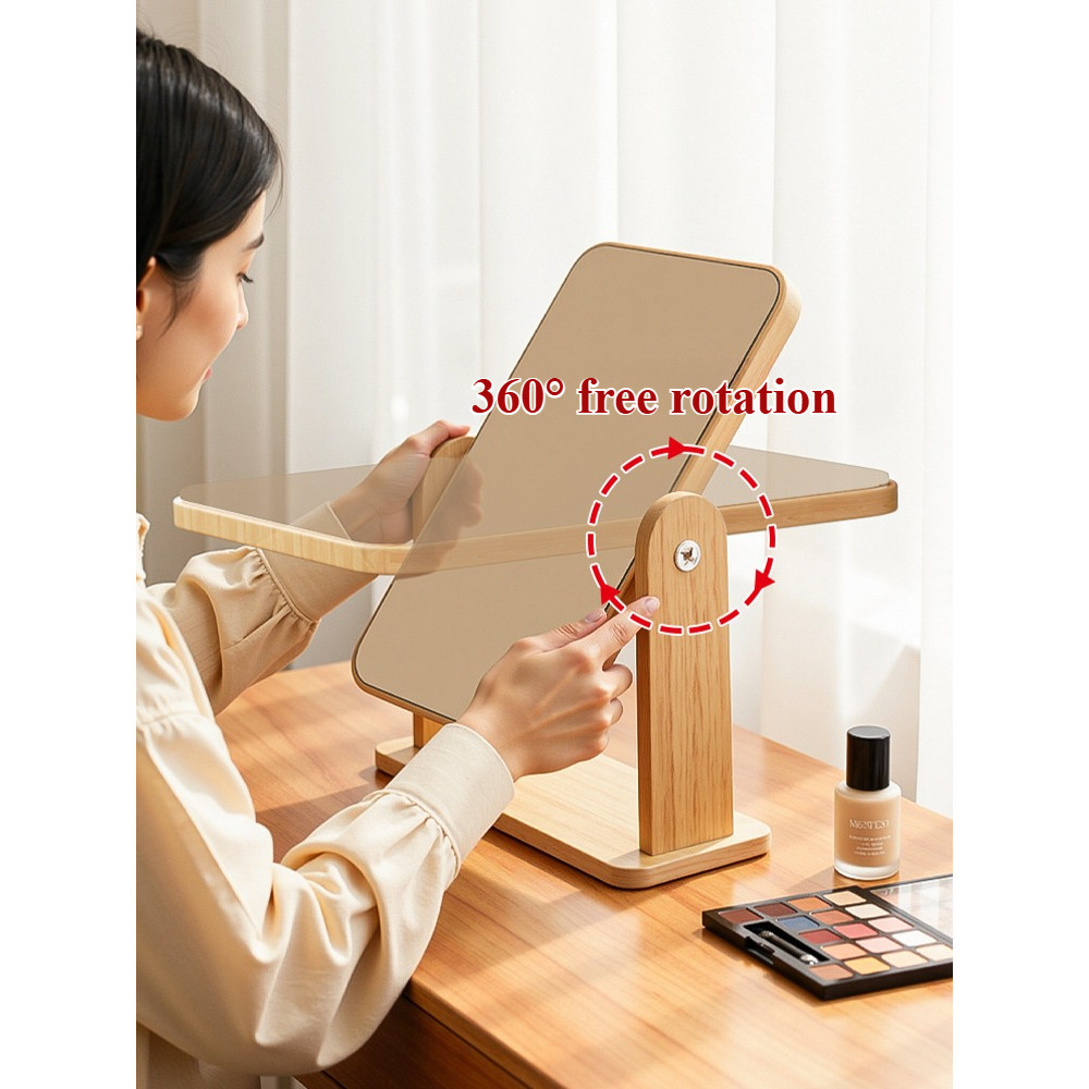 กระจกแต่งหน้า หมุน/พับ กระจกเงาลายไม้ กระจก กระจกตั้งโต๊ะมินิมอล สไตล์เกาหลี หมุนได้ 180 °กระจก สามารถปรับ แบบพกพา