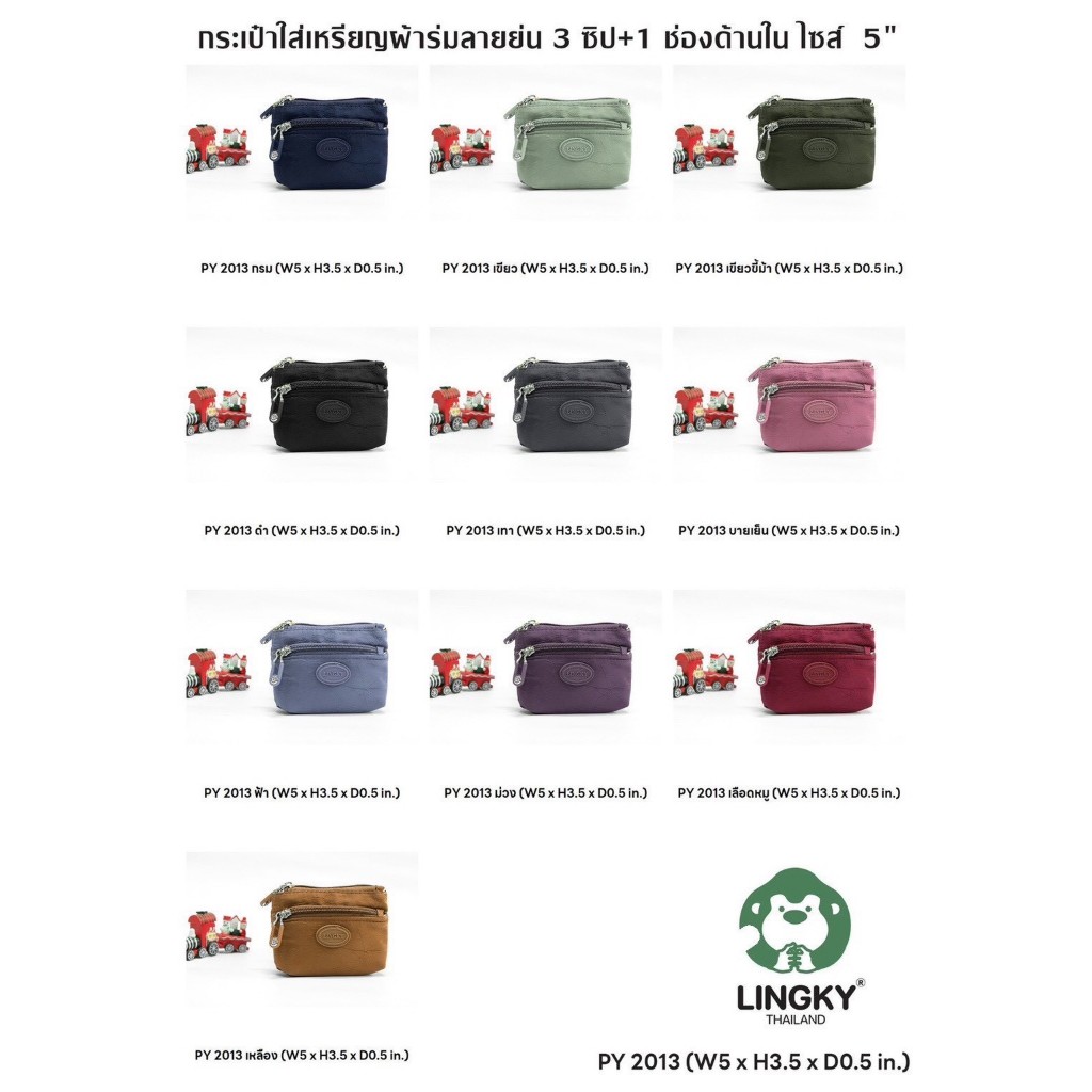 PY-2013 กระเป๋าใส่เหรียญ ผ้าร่ม ลายย่น ขนาด 5" มีทั้งหมด 3 ซิป + 1 ช่องด้านใน และมีให้เลือกด้วยกัน 10 สีค่ะ สีสวยๆท