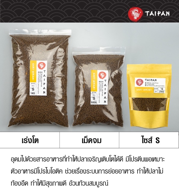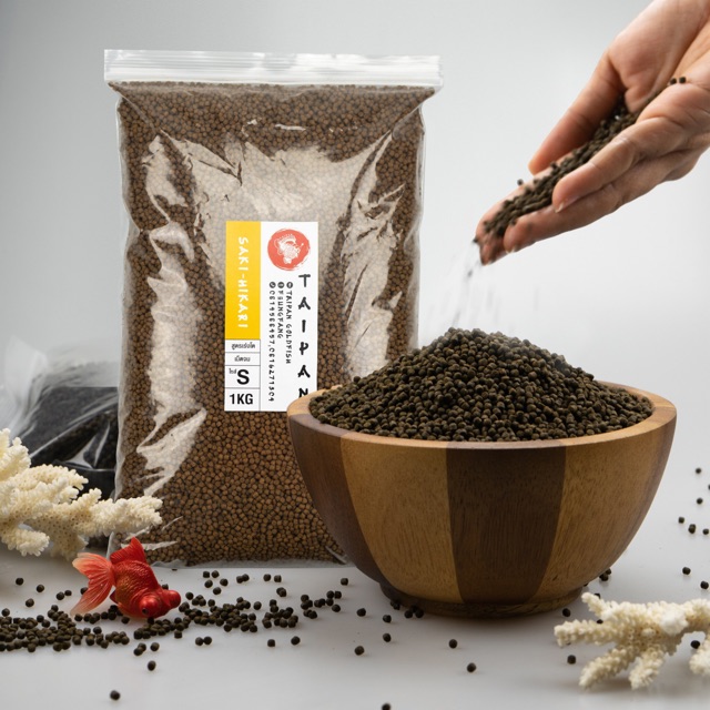 อาหารปลาฮิคาริแบ่งขาย 1 กิโลกรัม Saki-Hikari ซากิฮิคาริ สูตรเร่งโต เม็ดจม ไซส์ s