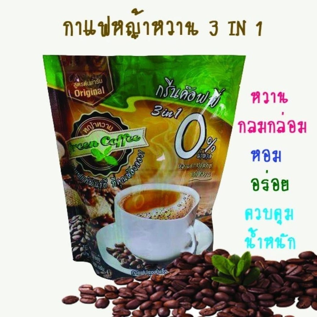 Green Coffee กรีนค๊อฟฟี่ 3 อิน 1 กาแฟปรุงสำเร็จชนิดผง สูตรต้นตำรับ 1ห่อx 20 ซอง