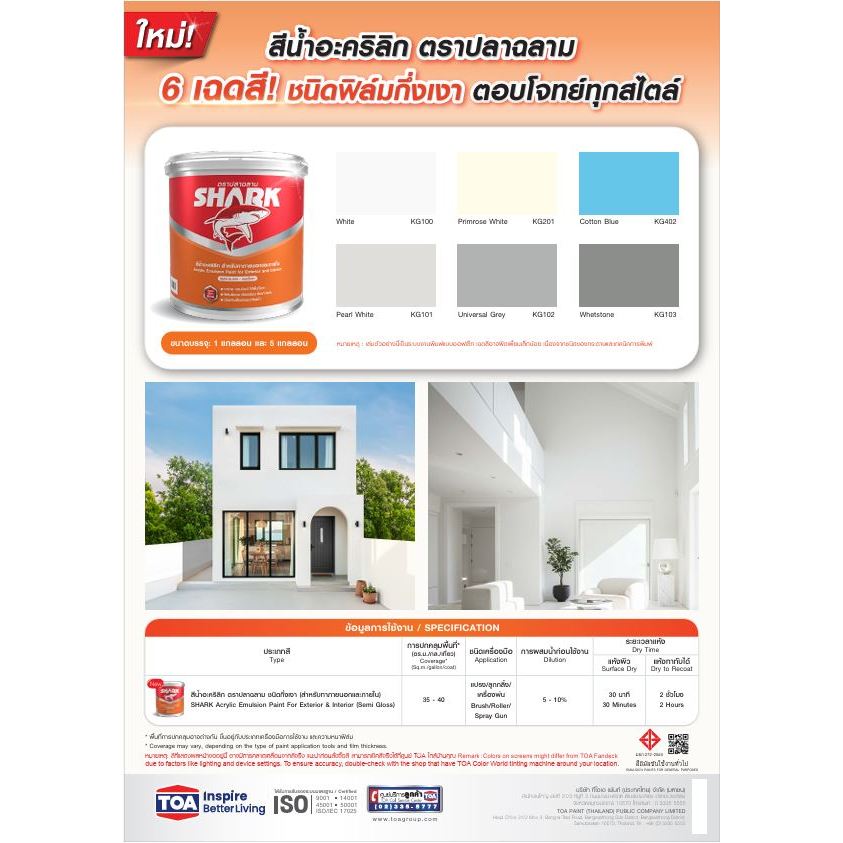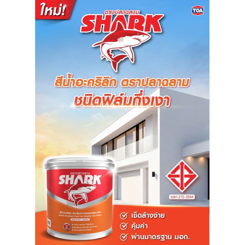 SHARK ตราปลาฉลาม สีน้ำอะคริลิกชนิดกึ่งเงา สำหรับภายนอกและภายใน ขนาด 5 แกลลอน (18ลิตร)