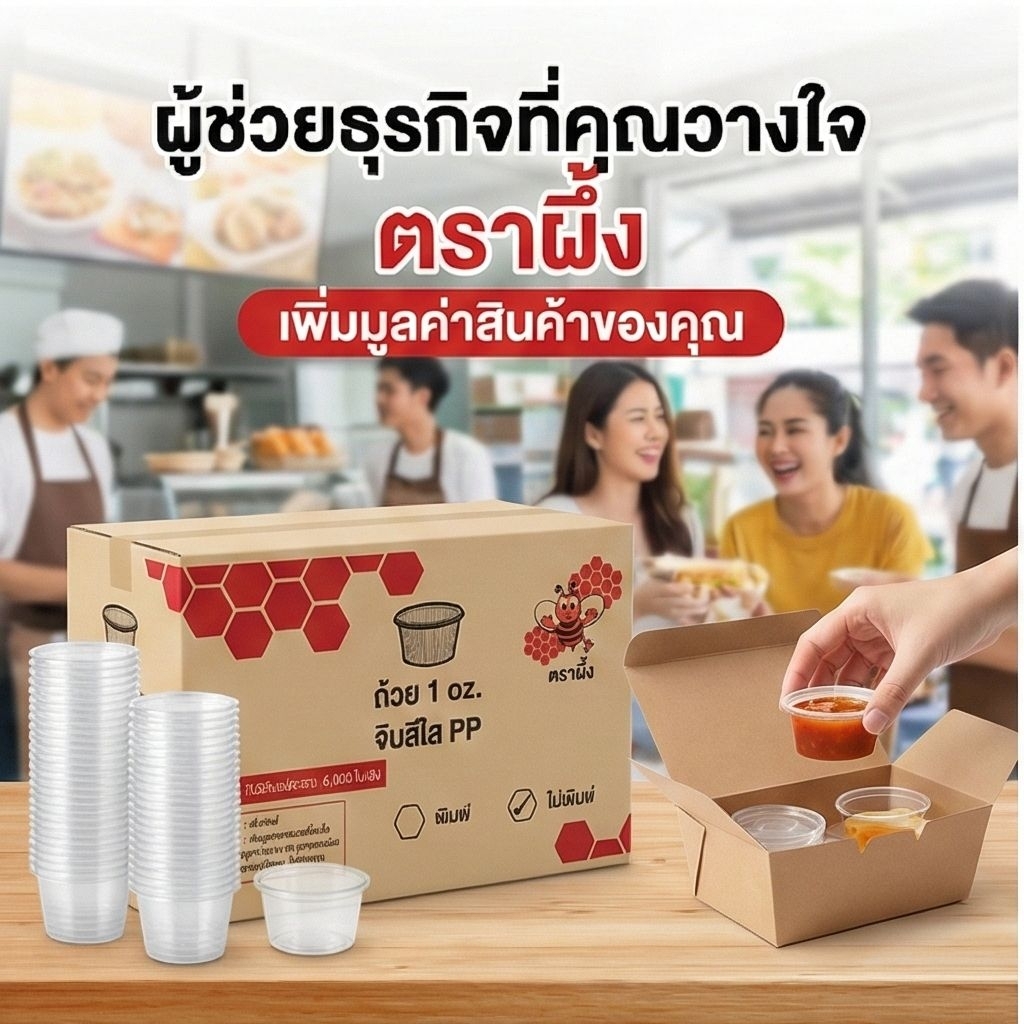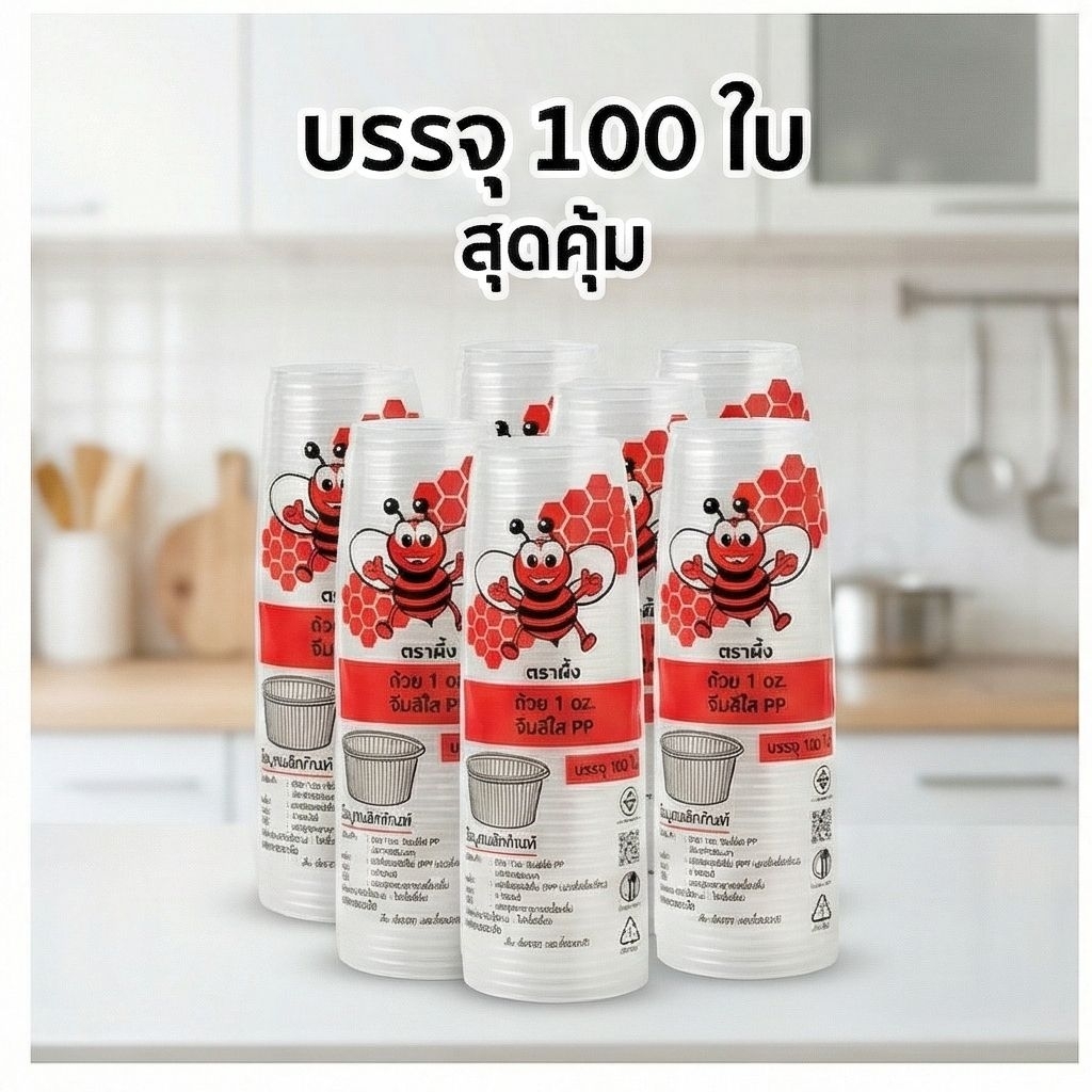 📦JT 1 ออนซ์ ถ้วยจีบสีใส PP ตราผึ้ง จำนวน 100 ชิ้น.×60 แถว/6,000 ชิ้น.(ยกลัง). 📦