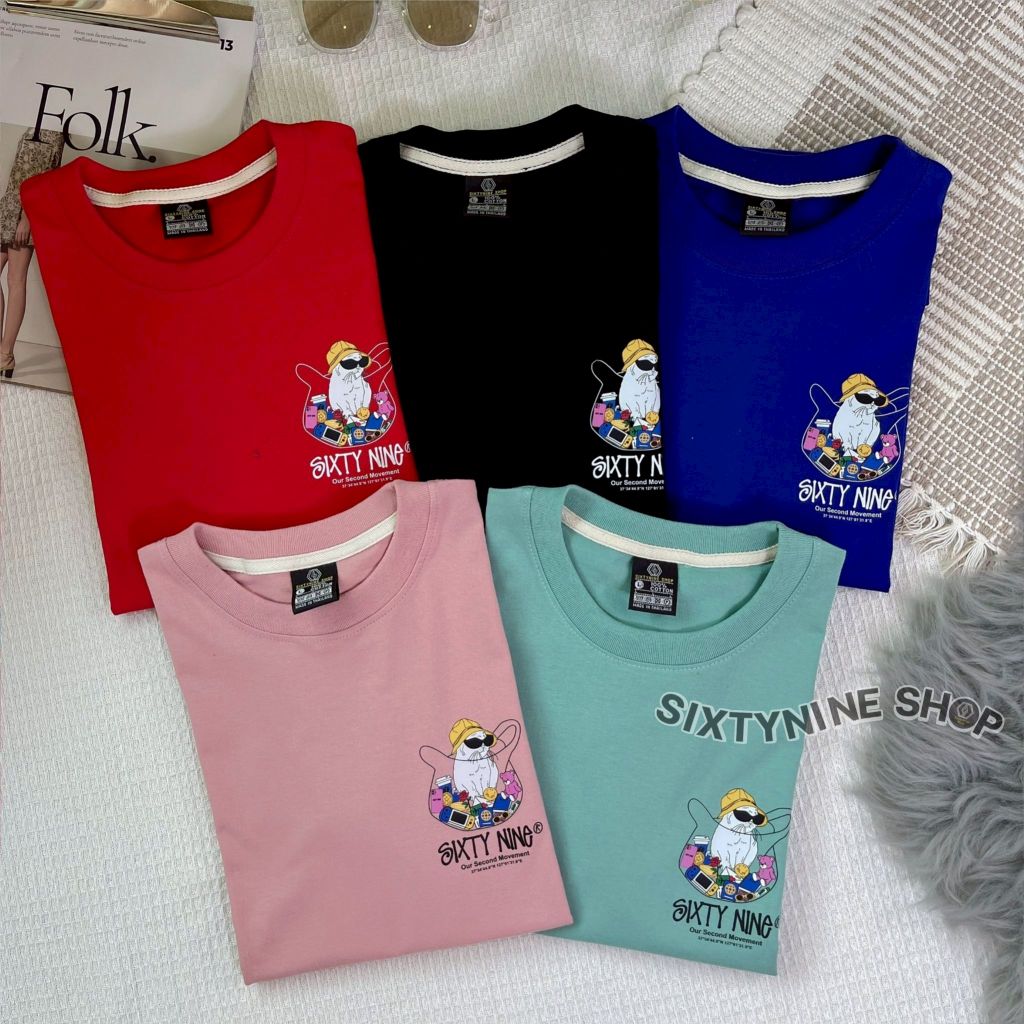 เสื้อยืดผ้าคอตตอน M-4XL พิมพ์ลาย " แมวถุง " พร้อมส่ง