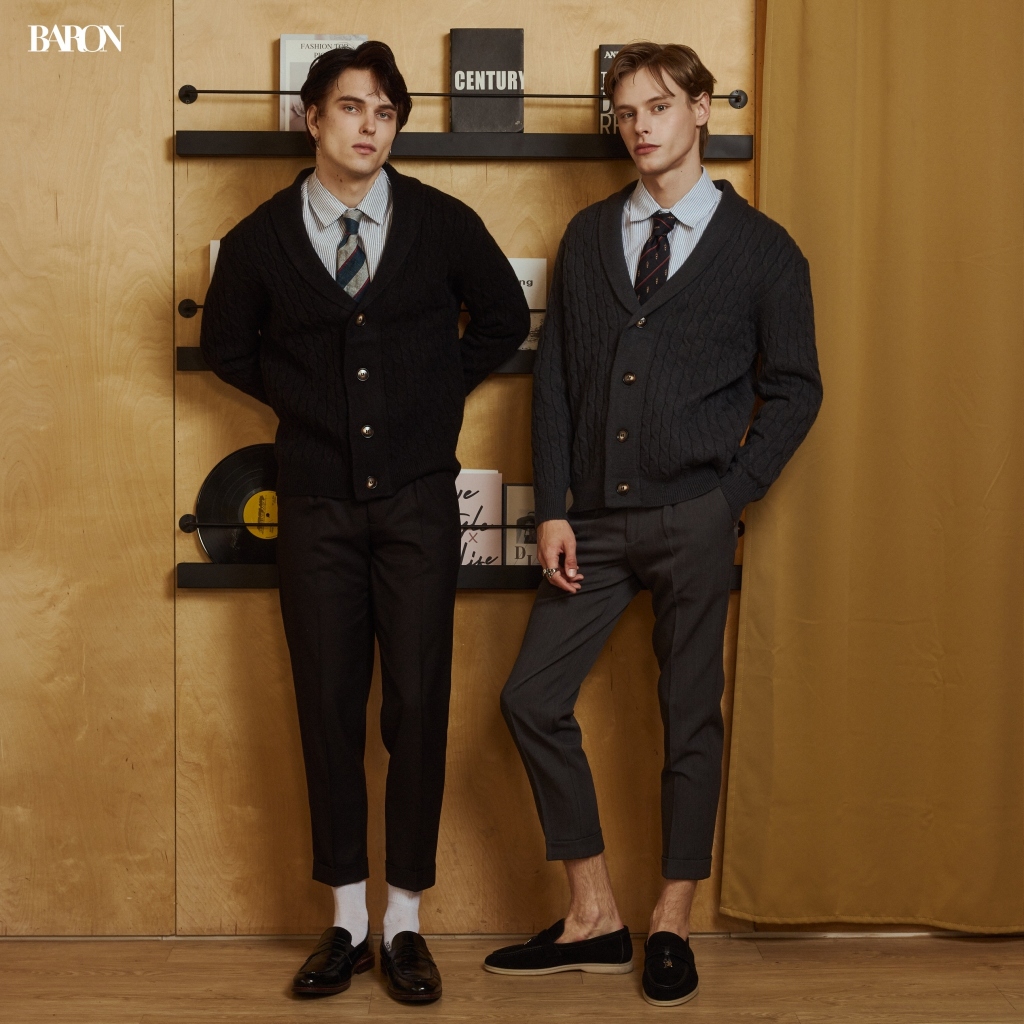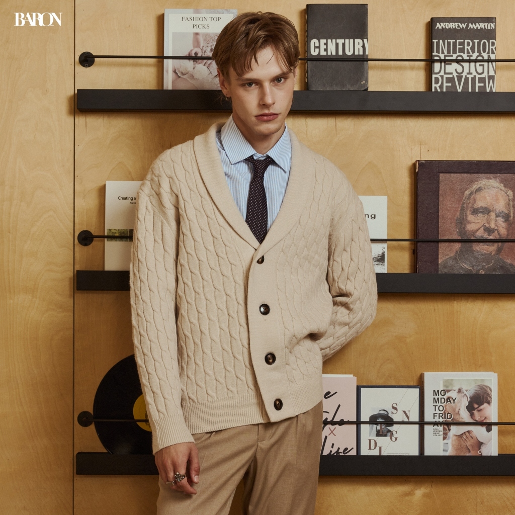 BARON TOBY CARDIGAN คาร์ดิแกนไหมพรมลายเปียแนวตั้ง คอวี (Cable Knit V-Neck Cardigan)