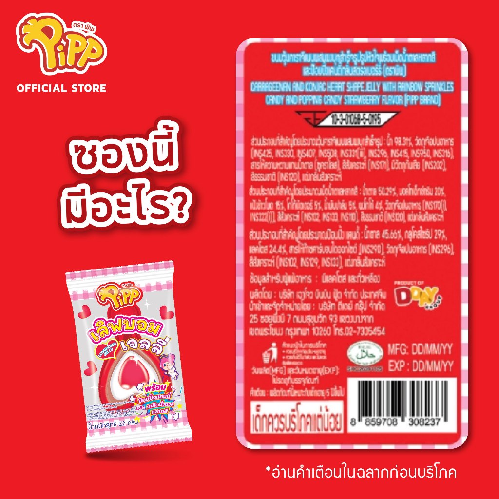 [ยกลัง][PP04028] Pipp Lovebomb Jelly พิพ เลิฟบอม เจลลี่ 22ก x 12 ชิ้น