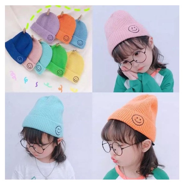 ☘️หมวกเด็กไหมพรม☘️ปักหน้ายิ้มสีสันสดใส 5เดือน ถึง 2 ขวบ