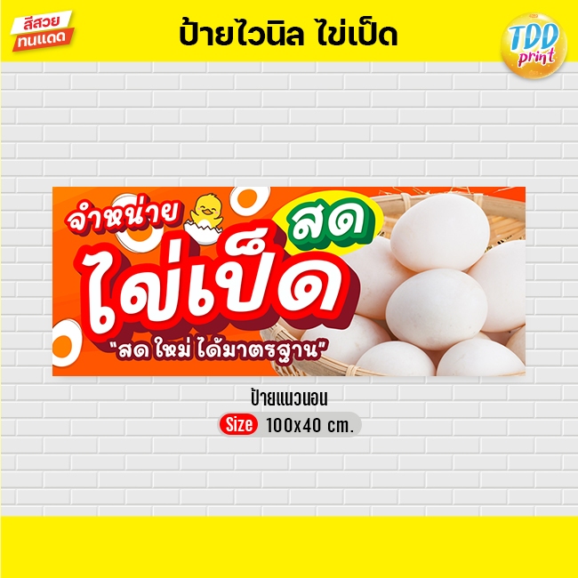 ป้ายไวนิลไข่เป็ดสดV1 ป้ายทนแดด กันน้ำ ภาพคมชัด สีสวยสดใส พร้อมใช้งาน