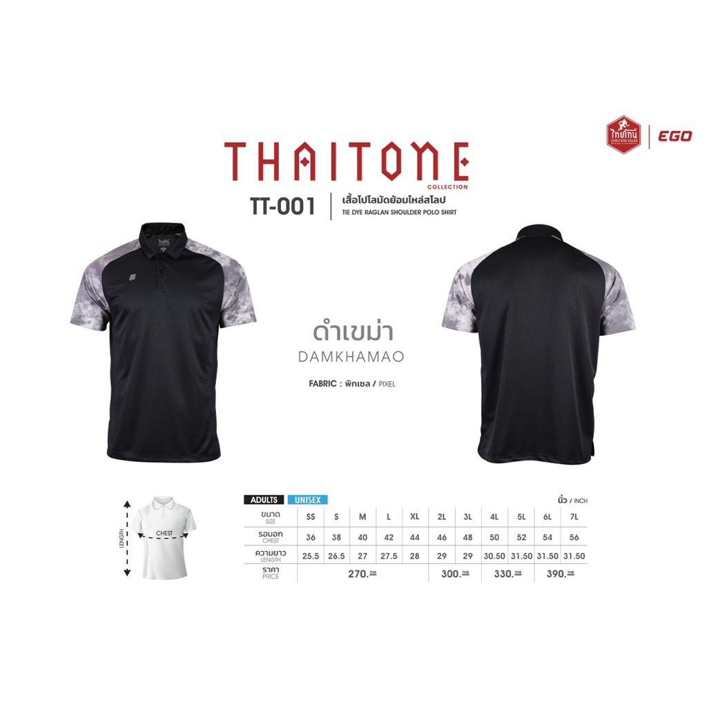 Ego Sport X Thai tone รหัส TT-001 สีดำเขม่า เนื้อผ้า Pixel เบอร์ SS-7L พร้อมส่ง ของแท้ 100%