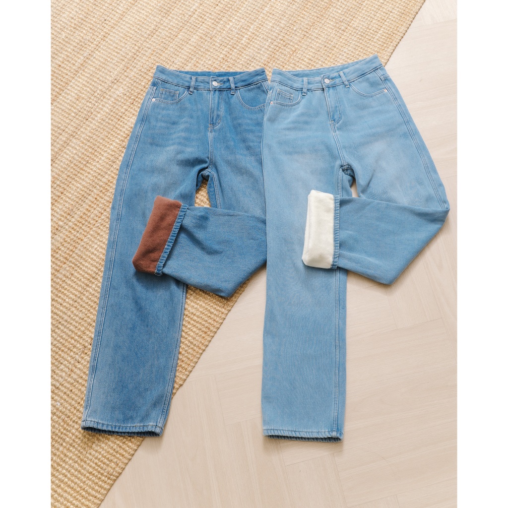 SNOWCOVER - SC219 Snowcover SoftShape Wool Straight Jeans กางเกงยีนส์บุขน ผ้ายีนส์ไม่ยืด นิ่มใส่สบายทรงตรงสวย