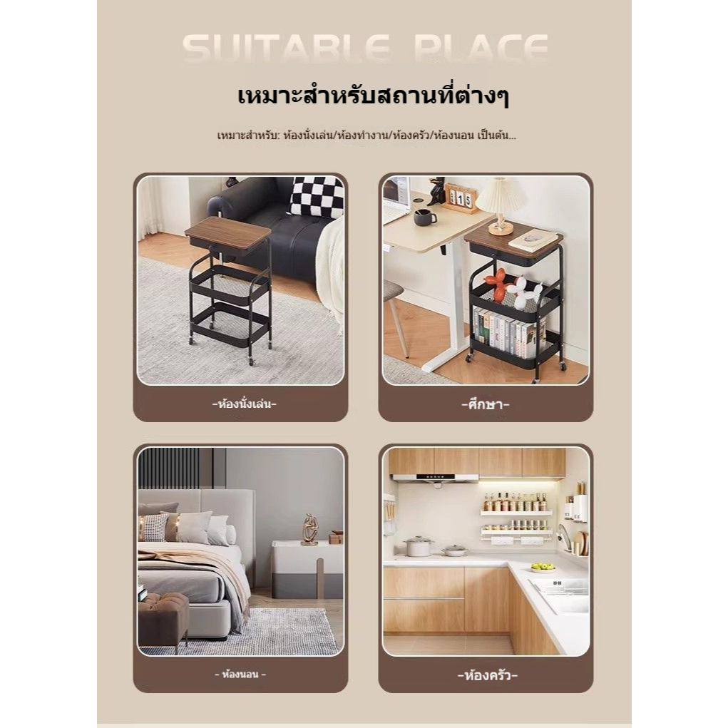 LEEGO ชั้นวางของ+ ลิ้นชัก โต๊ะกาแฟ รถเข็นเก็บของ โต๊ะข้างเตียง ชั้นวางของรถเข็น 3ชั้น มีล้อ ทำด้วยไม้ สําหรับวางของ