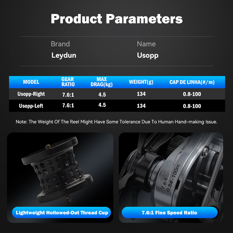 LEYDUN DC USOPP รอกตกปลา 7.6:1 134g คาร์บอนไมโครลาก 4.5KG Baitcasting Reel ใหม่