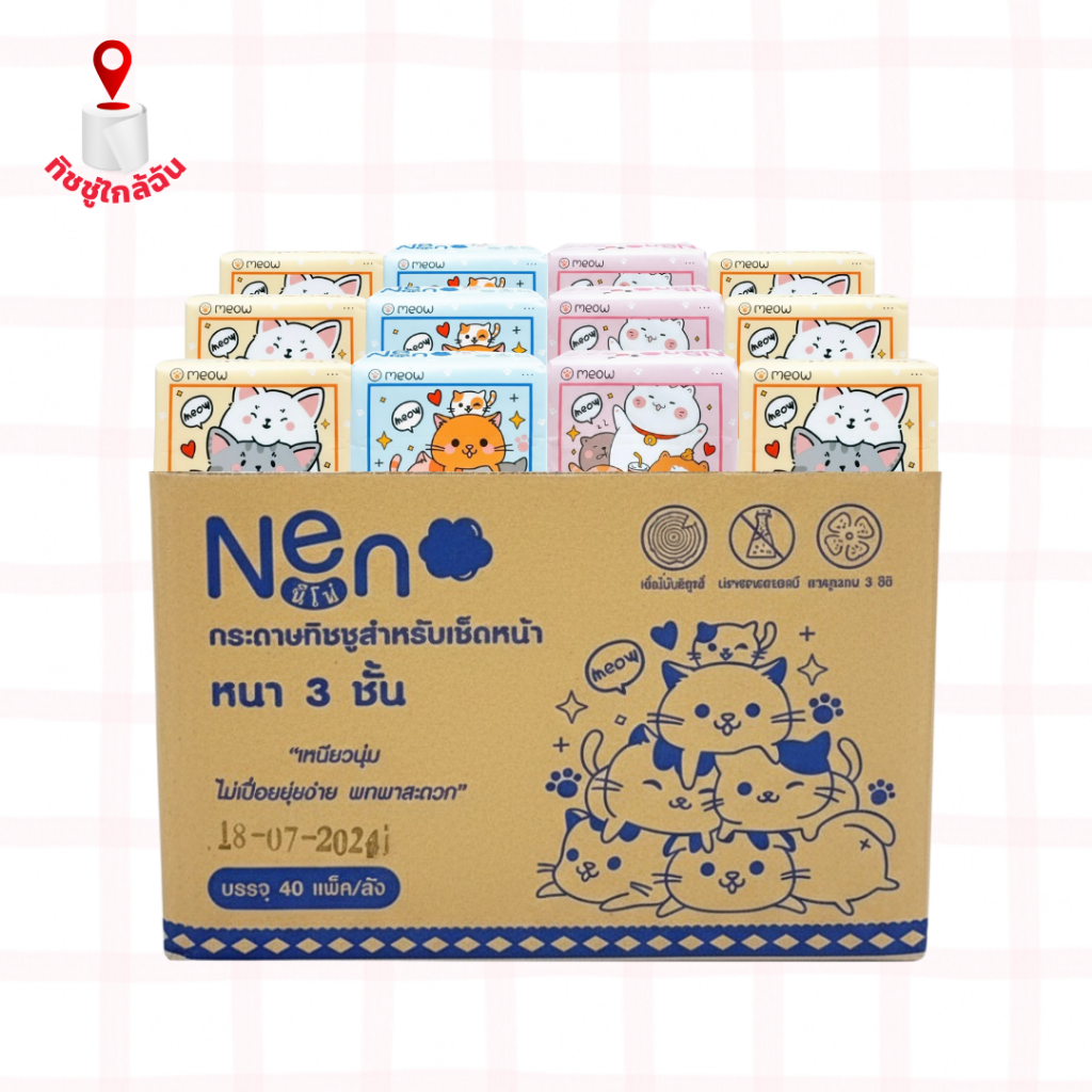 Neno แมว ลัง 40 ห่อ กระดาษทิชชู่ ยกลัง หนา 3 ชั้น ขนาดพกพา นีโน่ ไร้ฝุ่น ไม่เป็นขุย พกพาสะดวก กระดาษเช็ดหน้า GB/T 20808